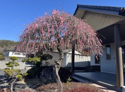 事務所の玄関前にあるしだれ梅の花が、ここ数日の暖かさで一気に開花しました🌸